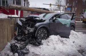 Driver injured after slamming her vehicle into a light pole and a cement barrier in downtown Kalamazoo