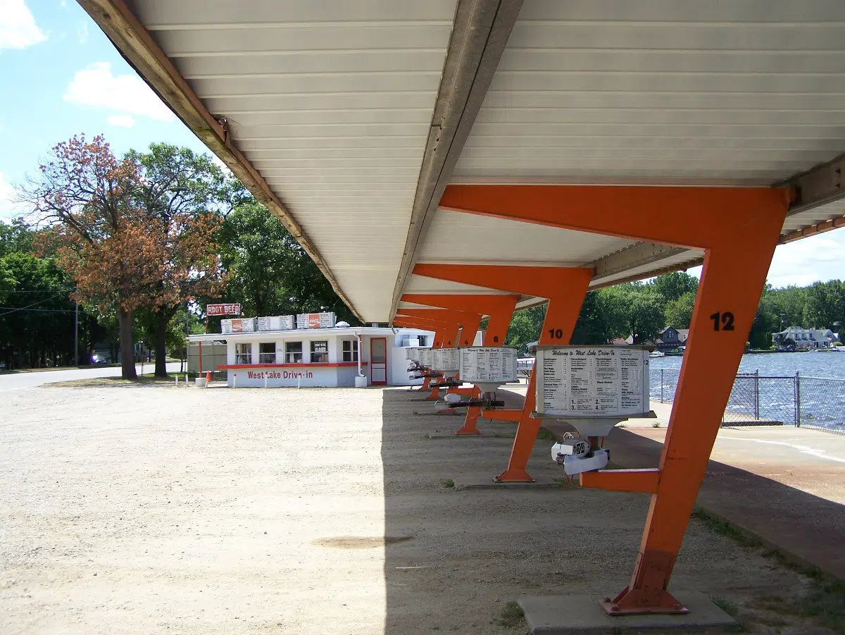 The prime piece of lakefront property is located on the narrow strip of land that separates West and Austin Lakes. The drive-in, with its magnificent view of the water, opened in the early 1960’s and remained open until this February, when higher costs no longer made it viable.